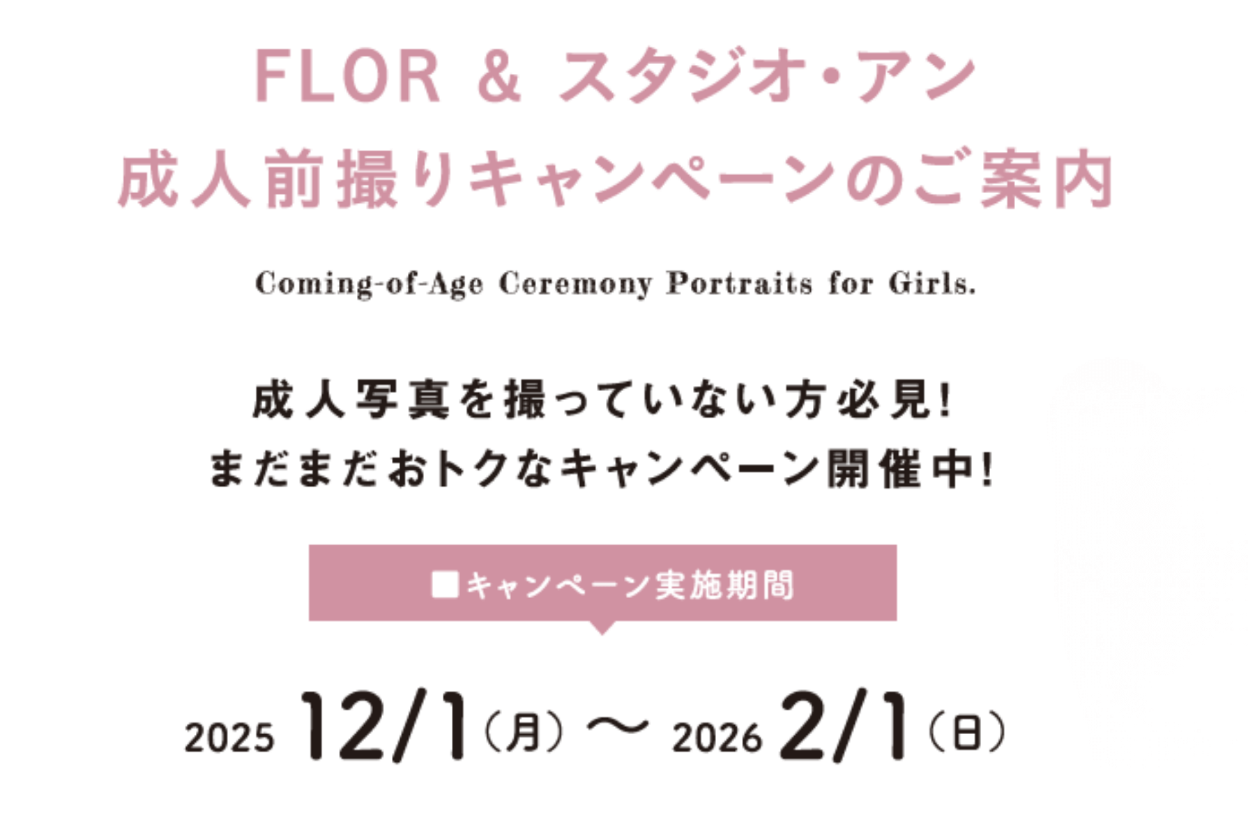 ※ご家族様の和装着用希望につきましては別途有料、要予約となります。